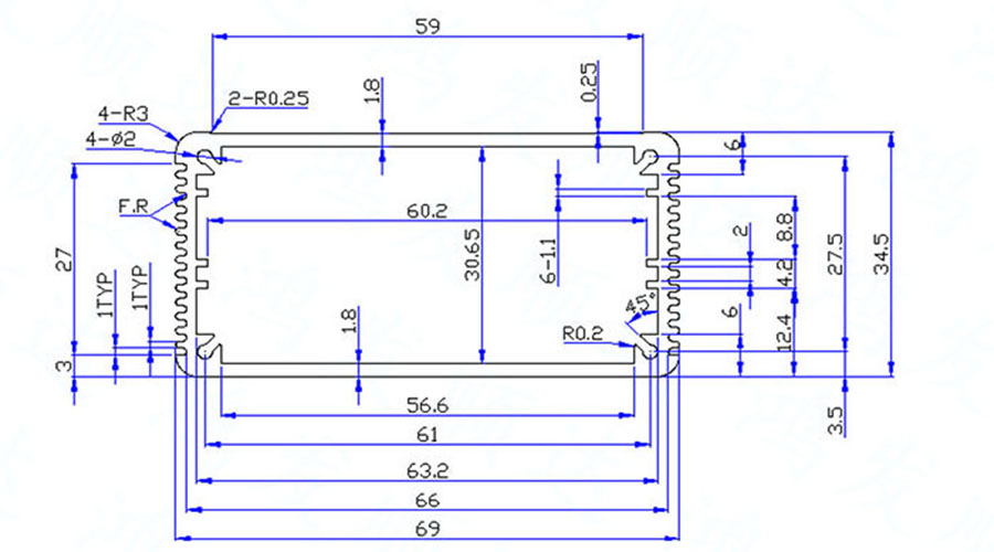 【產(chǎn)品材料】:6063擠壓鋁型材